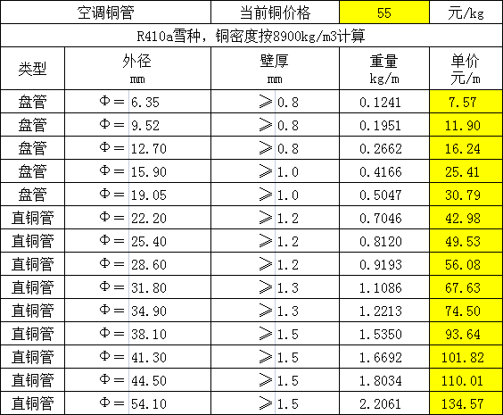 空調(diào)紫銅管與保溫套的計(jì)算方法