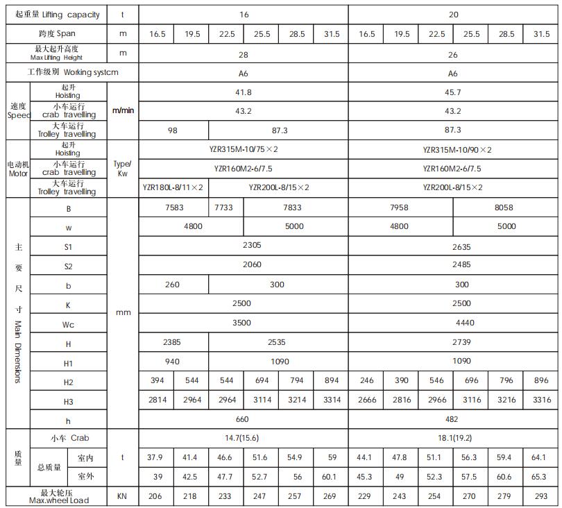 QZ型抓斗起重機的主要技術參數表: