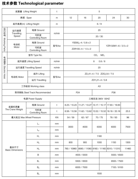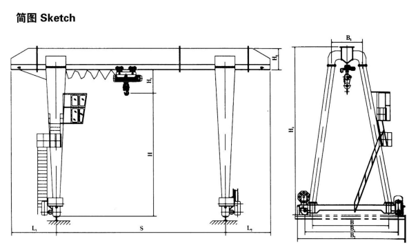 MH型5t單梁門式起重機是中小型可帶懸臂的簡易5t門式起重機,5t電動葫蘆采用CDI、MDI等形式,主梁是U型槽板與工字鋼焊接而成的組合梁,大車運行機構采用三合一驅動裝置。其適用起重量為5t,適用跨度為7.5-30米,工作環(huán)境溫度在-25—+40℃范圍內。其結構簡單、安裝、使用、維修方便,多用于工廠、貨場、碼頭、水電站等使用頻度低或額定起重量起吊次數(shù)少的場所。