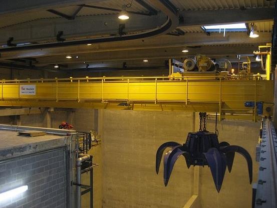 在選擇垃圾抓斗起重機時,要綜合考慮電廠規(guī)模、垃圾池大小等多方面因素。按照垃圾焚燒發(fā)電工程設(shè)計規(guī)范,一般采用2臺以上垃圾抓斗式起重機,其中日常使用1臺,備用1臺。而起重機給料力一般依賴于垃圾抓斗的體積、抓滿率等因素,抓斗越大,給料力越強。但是,由于操作的方便和靈活,垃圾抓斗并不是越大越好。所以選抓斗時還需綜合考慮垃圾池的大小及運行的可行性。由PLC觸摸屏或主令控制器控制的半自動控制,在進行半自動控制時,能自動重復(fù)碼垛、投料等過程,能有效地減少人為操作造成的誤差。此外,吊車稱重系統(tǒng)還具有過載報警功能,當(dāng)?shù)踯嚪Q重達到90%時會發(fā)出提示性報警;當(dāng)?shù)踯嚪Q重達到110%時會發(fā)出報警并停車,有效地避免了吊車過載。