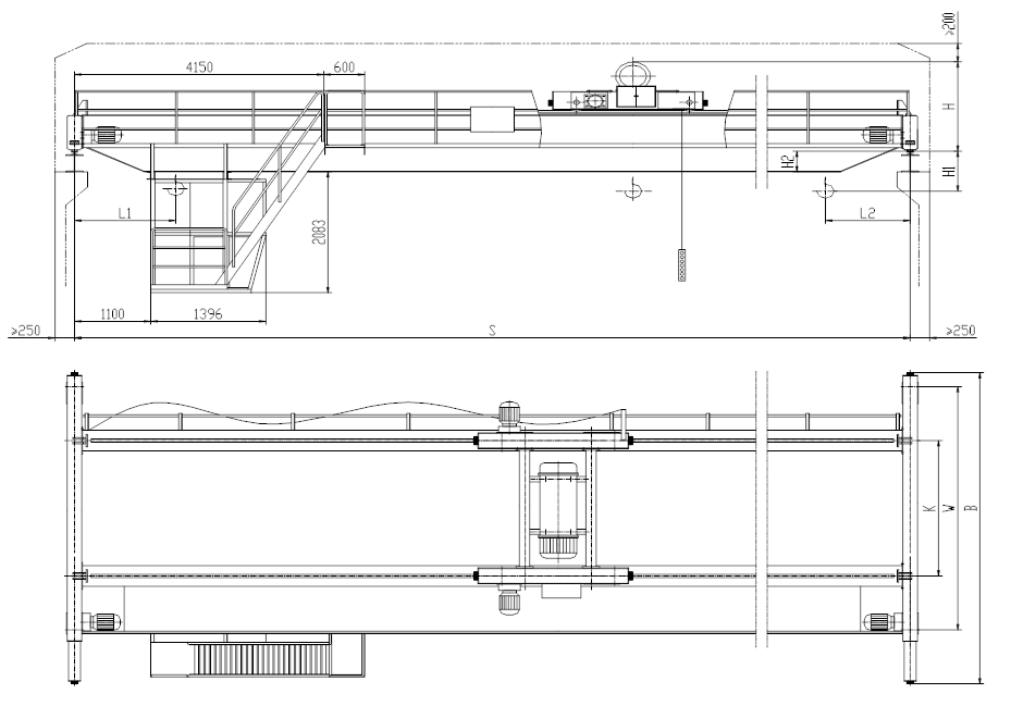 LH型雙梁橋式起重機(以下簡稱雙梁起重機)是按標(biāo)準(zhǔn)JB/T3695-1994設(shè)計制造的,與CDI、MDI等形式的電動葫蘆配套使用,成為一種有軌運行的輕小型雙梁起重機,其適用起重量為3-32t,國標(biāo)范圍內(nèi)適用跨度為7.5-22.5米,工作級別A3~A5,工作環(huán)境溫度在-25℃ ~ +40℃范圍內(nèi)。